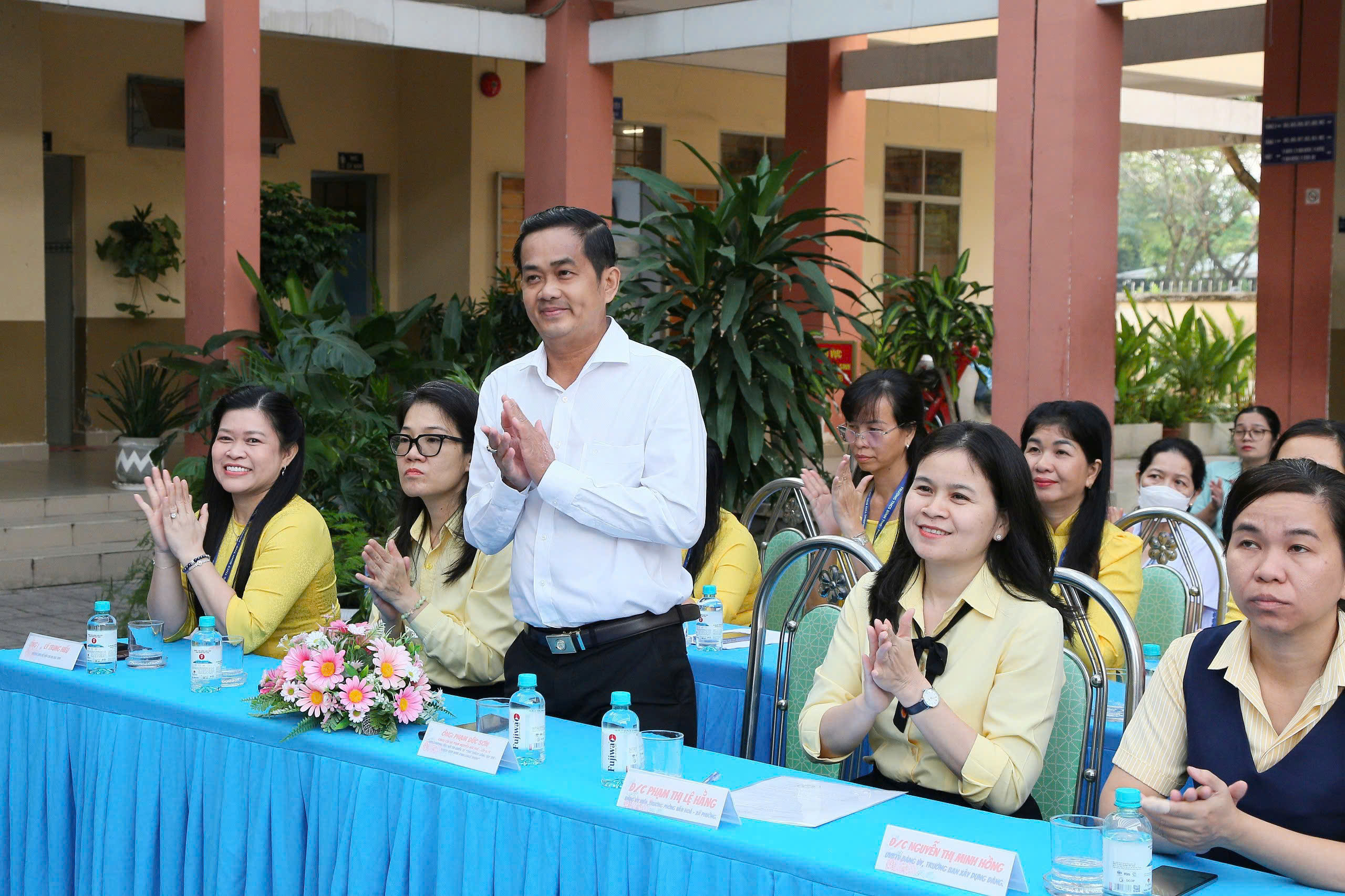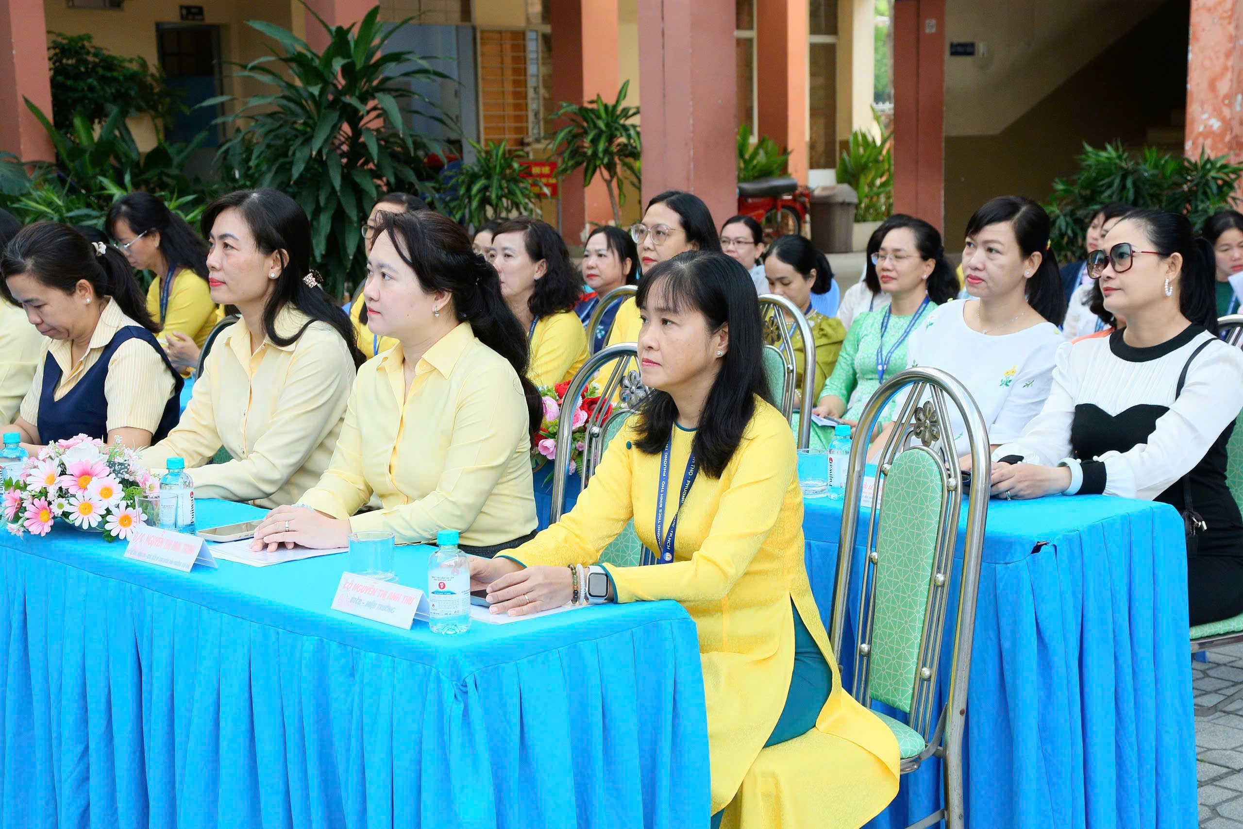 Tham dự buổi lễ có các đồng chí: Nguyễn Thị Mai Trinh, Phó Bí thư Đảng ủy, Chủ tịch UBND phường Thủ Đức; Nguyễn Thị Minh Hồng, UVBTV Đảng ủy, Trưởng Ban Xây dựng Đảng; Trần Thị Hồng Thúy, Đảng ủy viên, Phó Chủ tịch UBND phường; Phạm Thị Lệ Hằng, Đảng ủy viên, Trưởng Phòng VH-XH phường, cùng đại diện các ban ngành, Ban Giám hiệu nhà trường, Ban đại diện Cha mẹ học sinh, cùng đông đảo cán bộ, giáo viên và học sinh Trường THCS Bình Thọ.