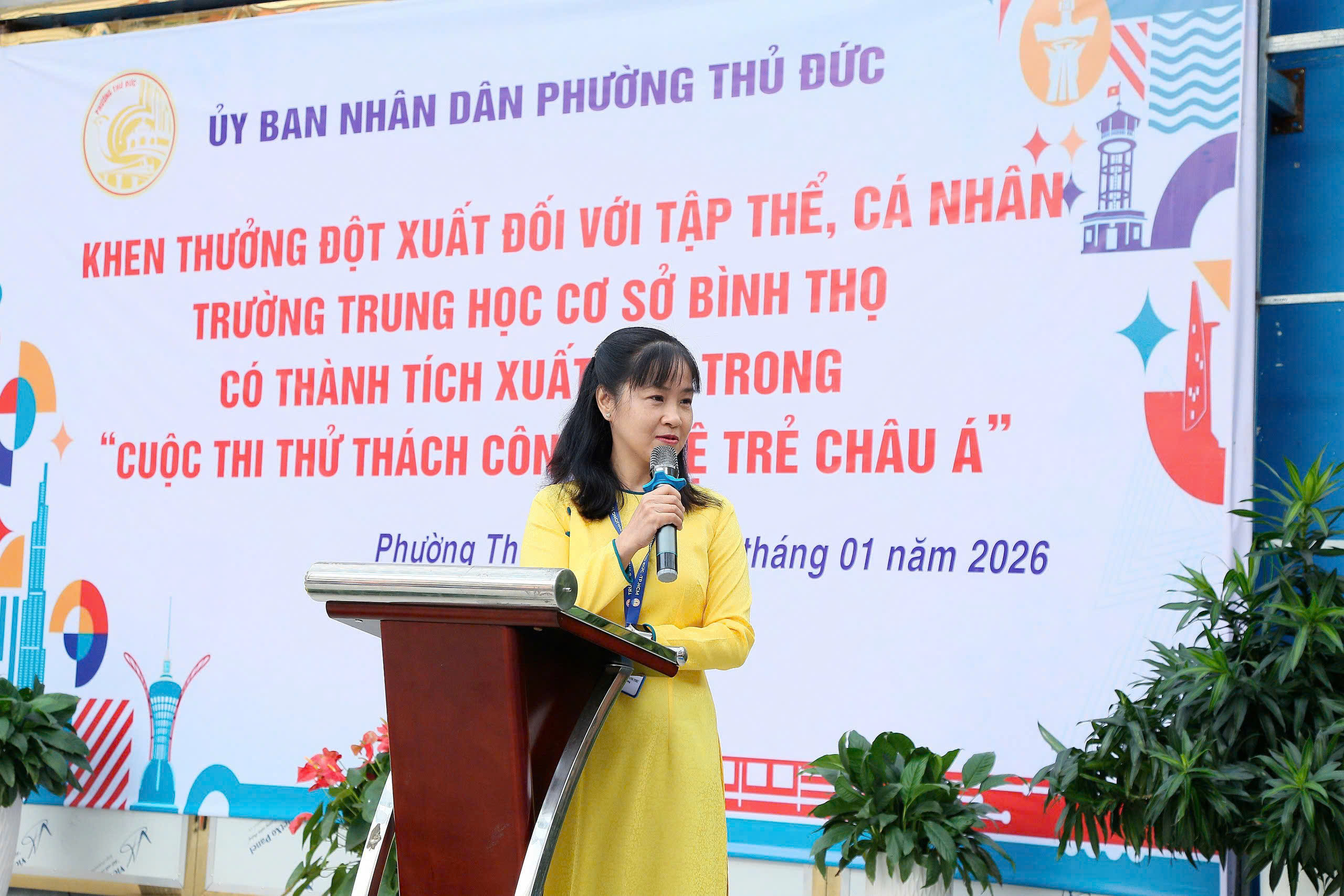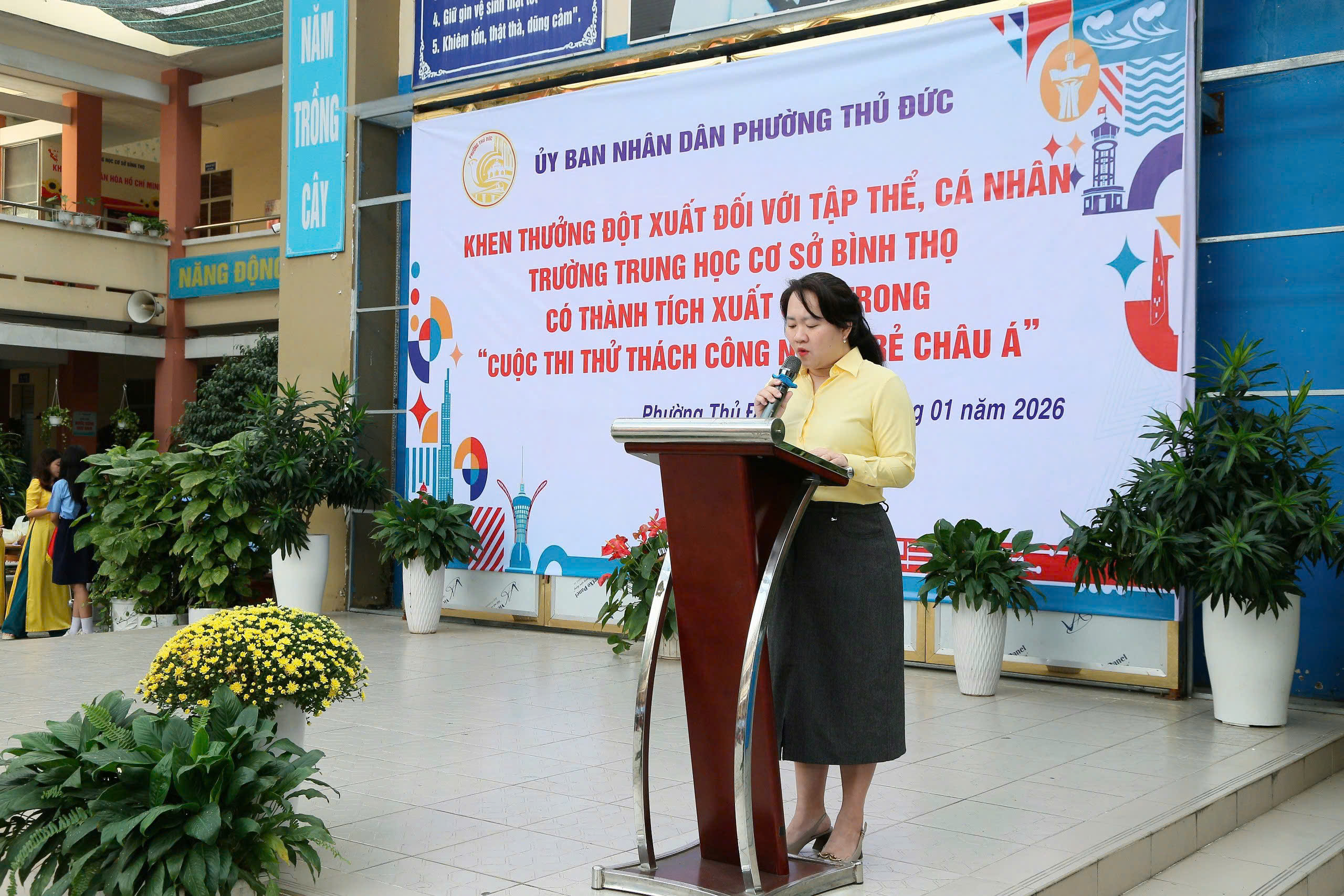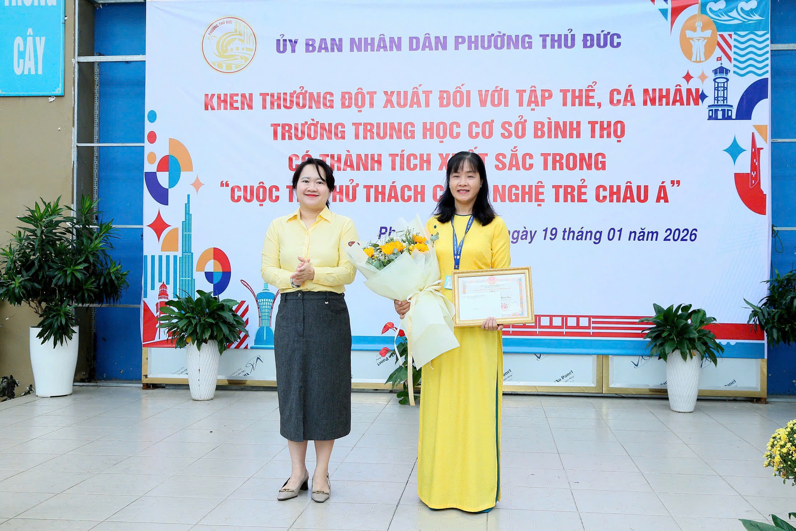 Nhằm ghi nhận, biểu dương những thành tích xuất sắc trong phong trào nghiên cứu khoa học, đổi mới sáng tạo của nhà trường, Ủy ban nhân dân phường Thủ Đức đã tổ chức buổi lễ khen thưởng các tập thể, cá nhân Trường THCS Bình Thọ đạt thành tích cao tại Hội thi Quốc tế Thử thách Sáng tạo trẻ – Youth Tech Asia Challenge 2026.